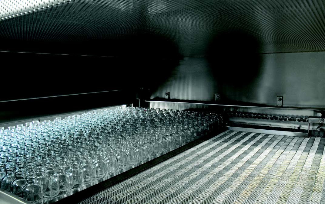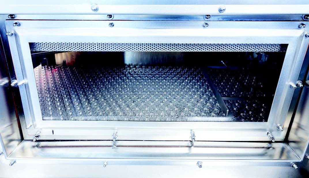 - Entwickelt für die Sterilisation und Depyrogenisierung von Glasbehältnissen im Rahmen eines kontinuierlichen Prozesses, bei dem die ISO5-Umgebung über die gesamte Länge der drei Kammern erhalten bleibt: Einlasskammer, Warmkammer, Kühlkammer.